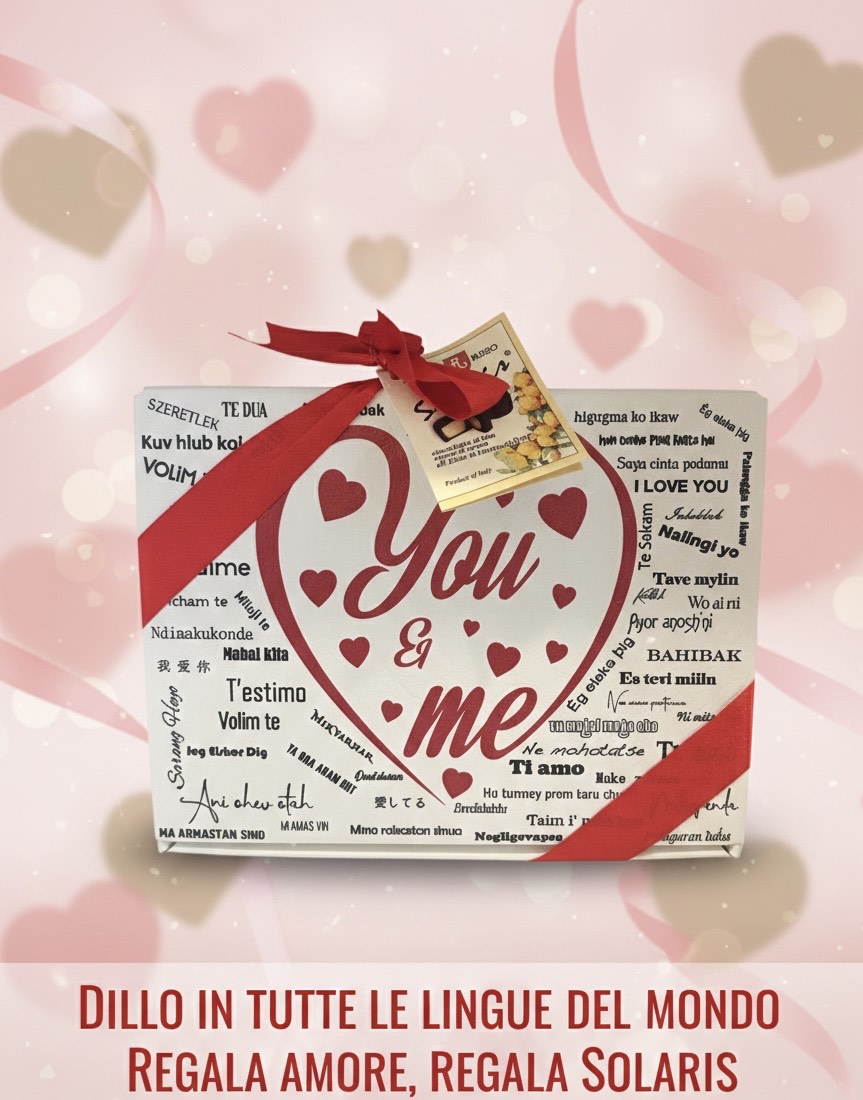Box in cartone con grafica San Valentino, con all’interno 200 g di cioccolatini ripieni di crema di liquore